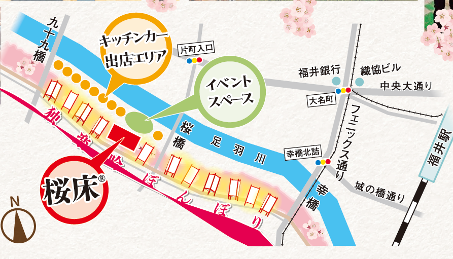 ぼんぼり物語期間中は、桜床前にイベントスペースが用意されます。