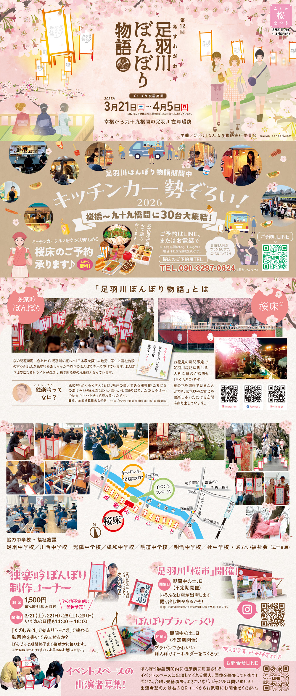 2026年3月21日(土)〜4月5日(日)まで、第12回足羽川ぼんぼり物語を開催いたします。